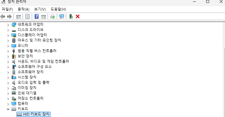만약 키보드 항목 자체가 보이지 않는다면, 드라이버가 손상되었거나 인식 자체가 되지 않는 상황입니다.