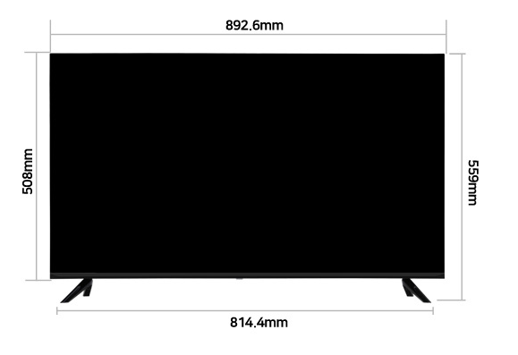 실제 모델인 Basic40F의 스펙을 보면, 스탠드를 제외한 사이즈는 892.6 x 508 x 82.5 mm입니다. 이는 대각선 길이 101cm로, 계산값과 매우 근접합니다.