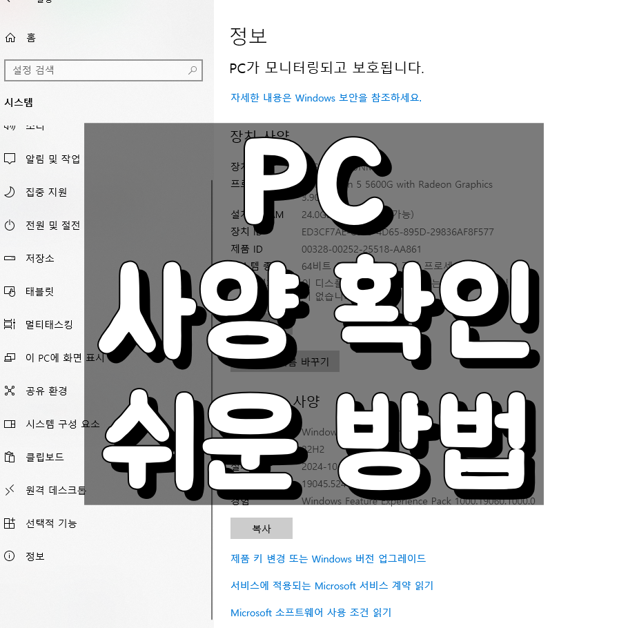 노트북과 데스크톱의 PC 사양 확인 방법이 다른가요?